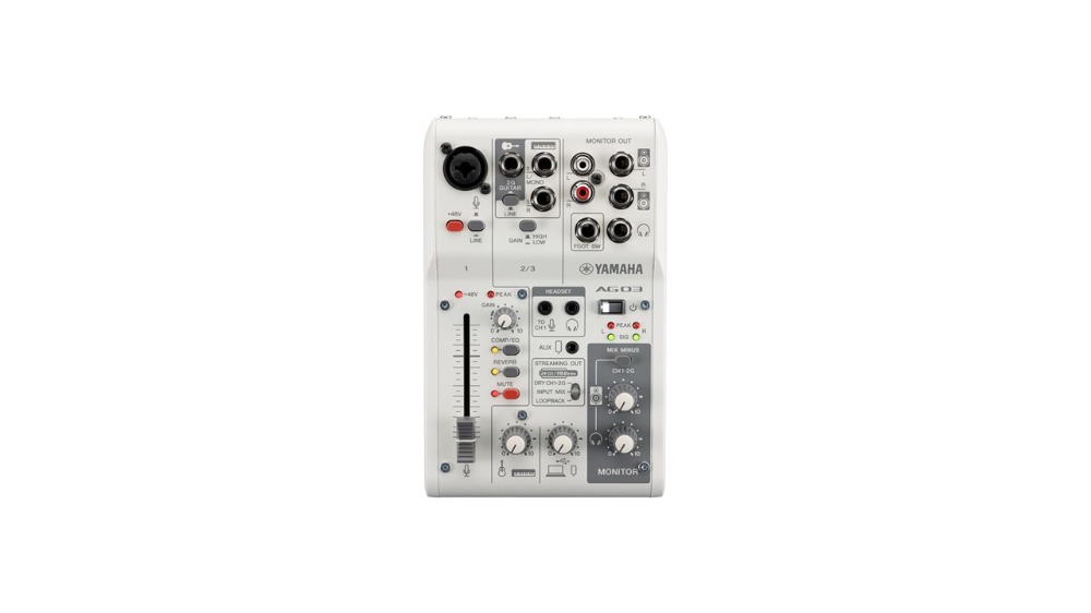 除了可用於電容式麥克風的輸入通道之外,AG03MK2 亦備有一個用來連接吉他或TRS的 6.3mm孔輸入,以及一個更高階的四極TRRS接口(可供連接耳機麥克風組合型),提供智慧型手機輸入和輸出的能力。您亦可用Loopback回放功能將音訊從連接的 USB 裝置回放到 USB 串流輸出,就像先前的 AG 系列混音器一樣。